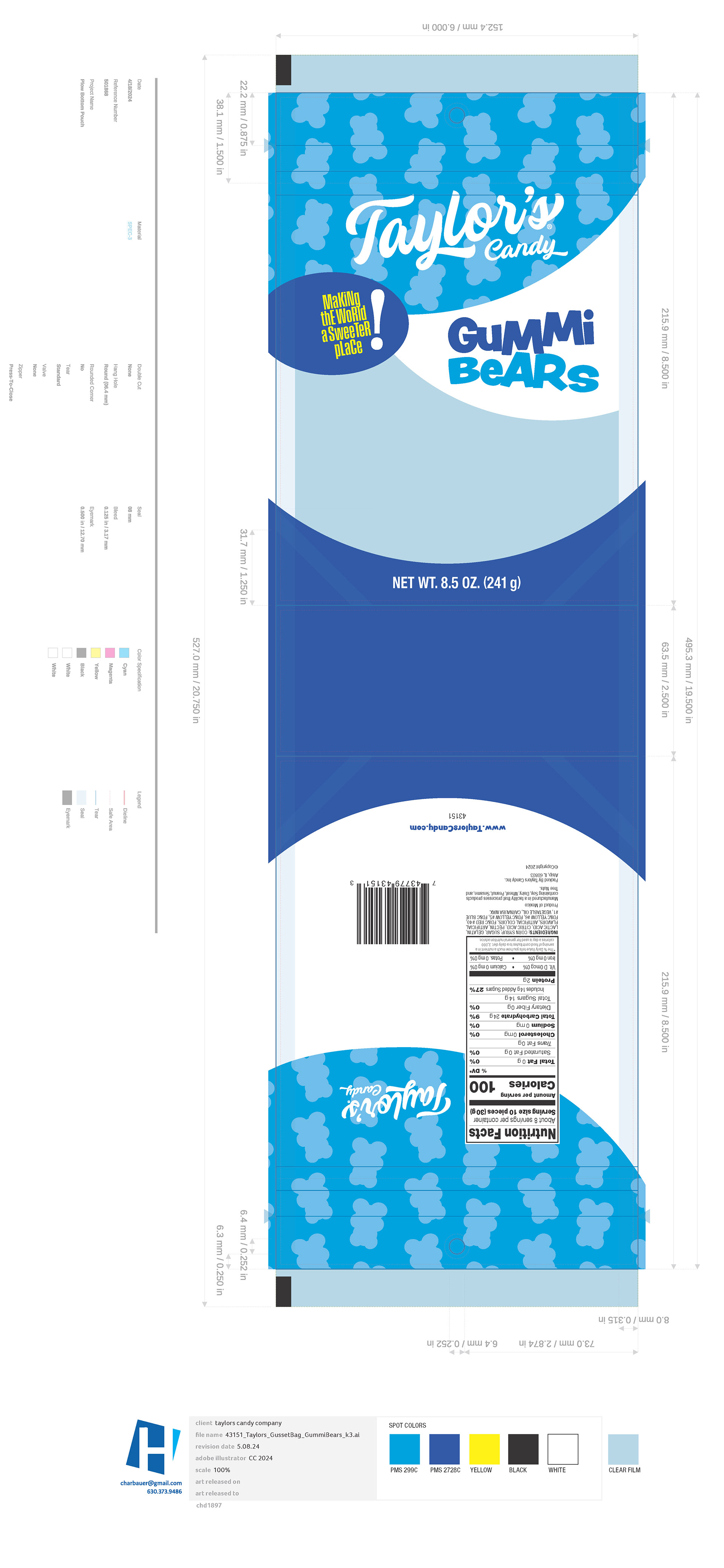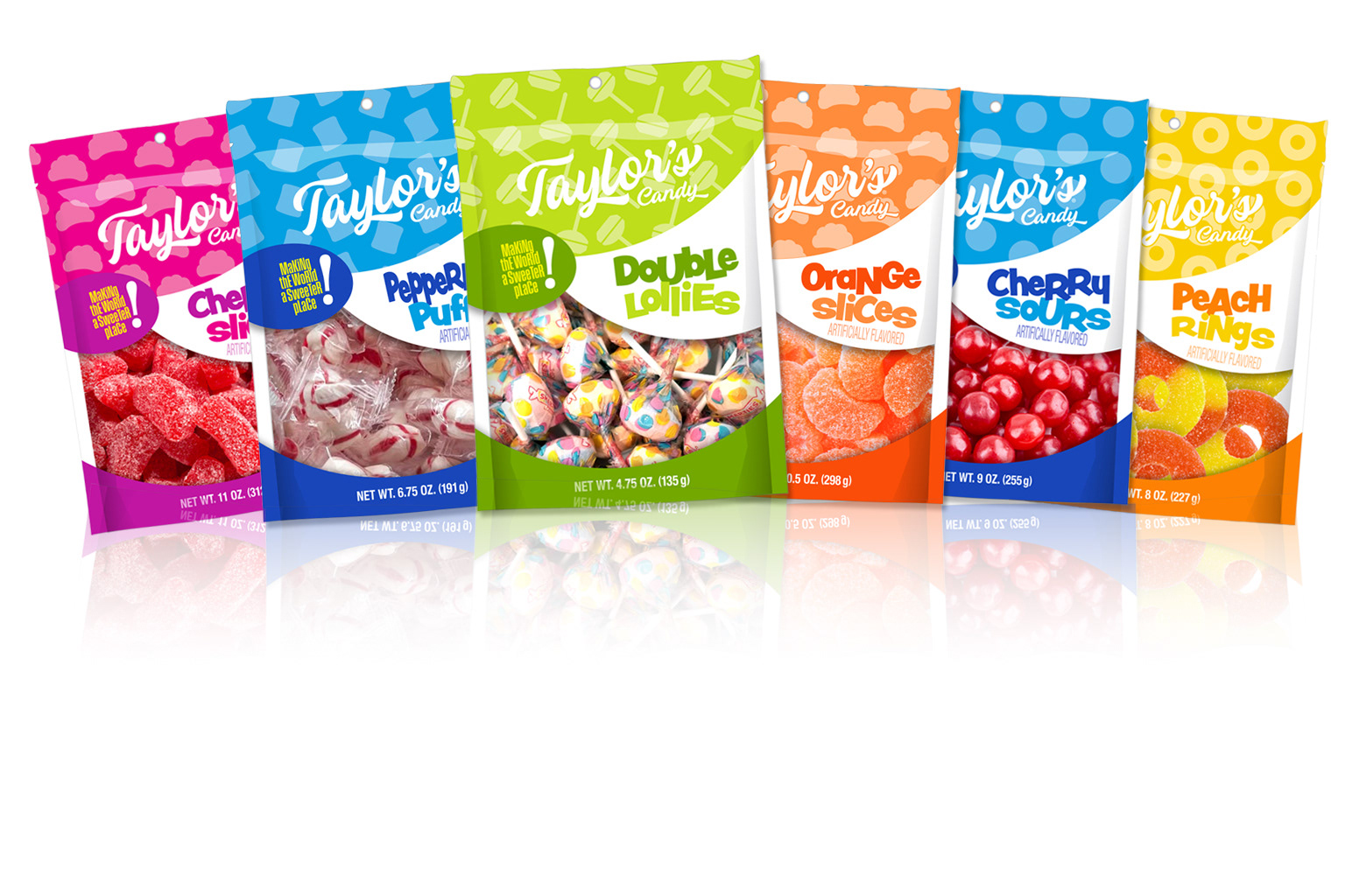 package design for a line of ten candy items. responsible for both the creative design and production artwork.