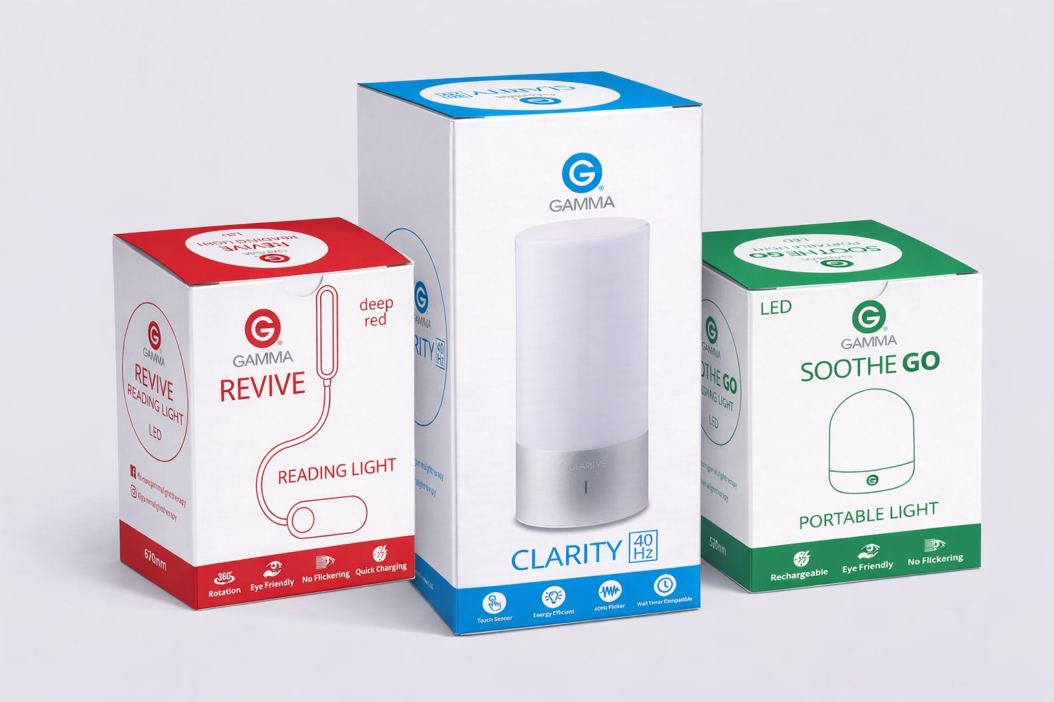 package design for gamma light. created the packaging design and branding for all eleven products of the gamma light offerings. responsible for the creative design and final artwork production for cartons, product labels and instruction manuals.